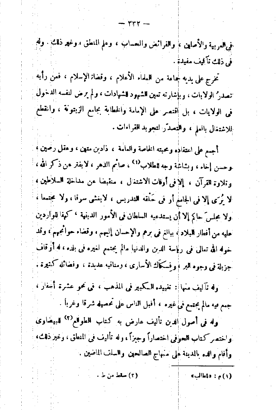 في العربية والأصلين والفرائض والحساب وعلم المنطق وغير ذلك. وله في ذلك تآليف مفيدة.