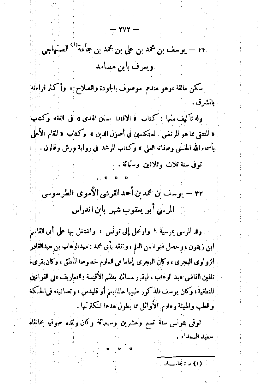يوسف بن محمد بن علي بن محمد بن جماعة الصنهاجي ويعرف بابن مصامد