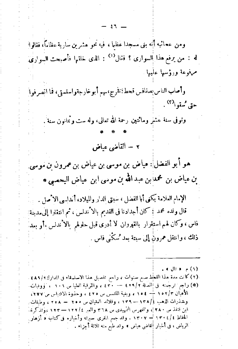هو أبو الفضل: عياض بن موسى بن عياض بن عمرون بن موسى بن عياض بن محمد بن عبد الله بن موسى بن عياض اليحصبي الإمام العلامة يكنى أبا الفضل سبتي الدار والميلاد أندلسي الأصل.
