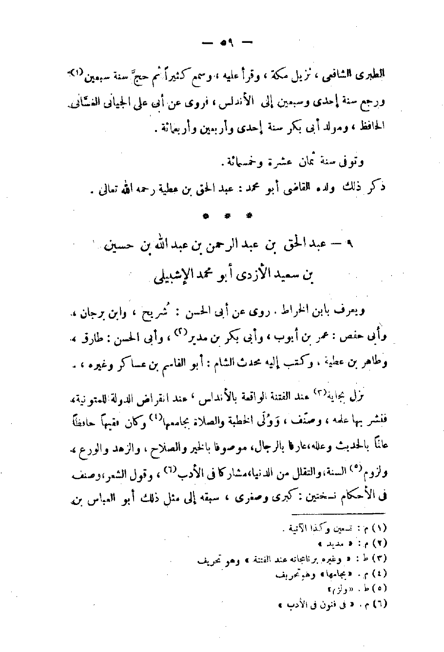الطبري الشافعي نزيل مكة وقرأ عليه وسمع كثيراً ثم حج سنة سبعين ورجع سنة إحدى وسبعين إلى الأندلس فروى عن أبي علي الجياني الغساني الحافظ ومولد أبي بكر سنة إحدى وأربعين وأربعمائة. وتوفي سنة ثمان عشرة وخمسمائة. ذكر ذلك ولده القاضي أبو محمد: عبد الحق بن عطية رحمه الله تعالى.