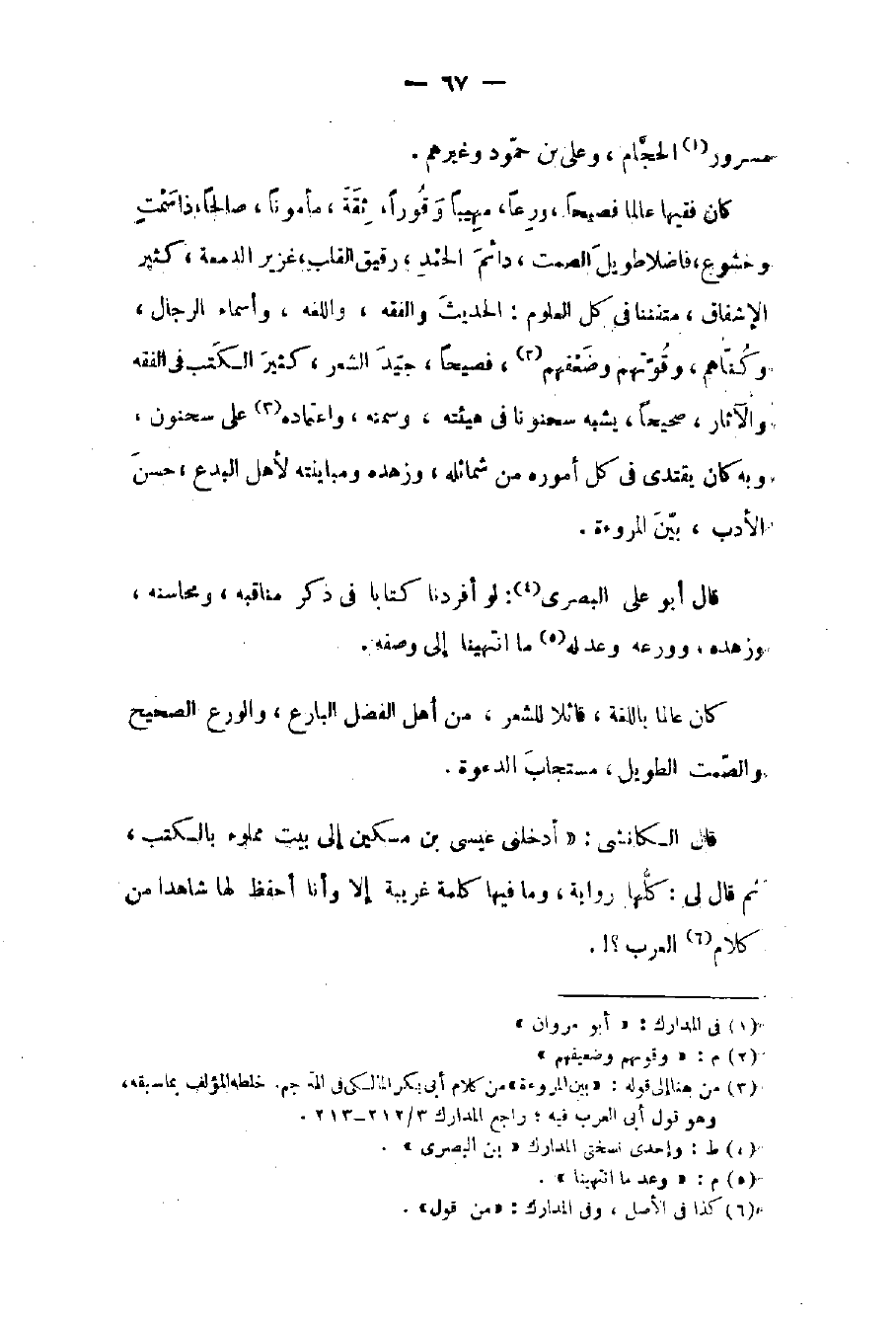 كان فقيهاً عالماً فصيحاً ورعاً مهيباً وقوراً ثقة مأموناً صالحاً ذا سمت وخشوع فاضلاً طويل الصمت دائم الحمد رقيق القلب غزير الدمعة كثير الإشفاق متفنناً في كل العلوم: الحديث والفقه واللغة وأسماء الرجال وكناهم وقوتهم وضعفهم فصيحاً جيد الشعر كثير الكتب في الفقه والآثار صحيحاً يشبه سحنوناً في هيئته وسمته واعتماده على سحنون وبه كان يقتدي في كل أموره من شمائله وزهده ومباينته لأهل البدع حسن الأدب بين المروءة.