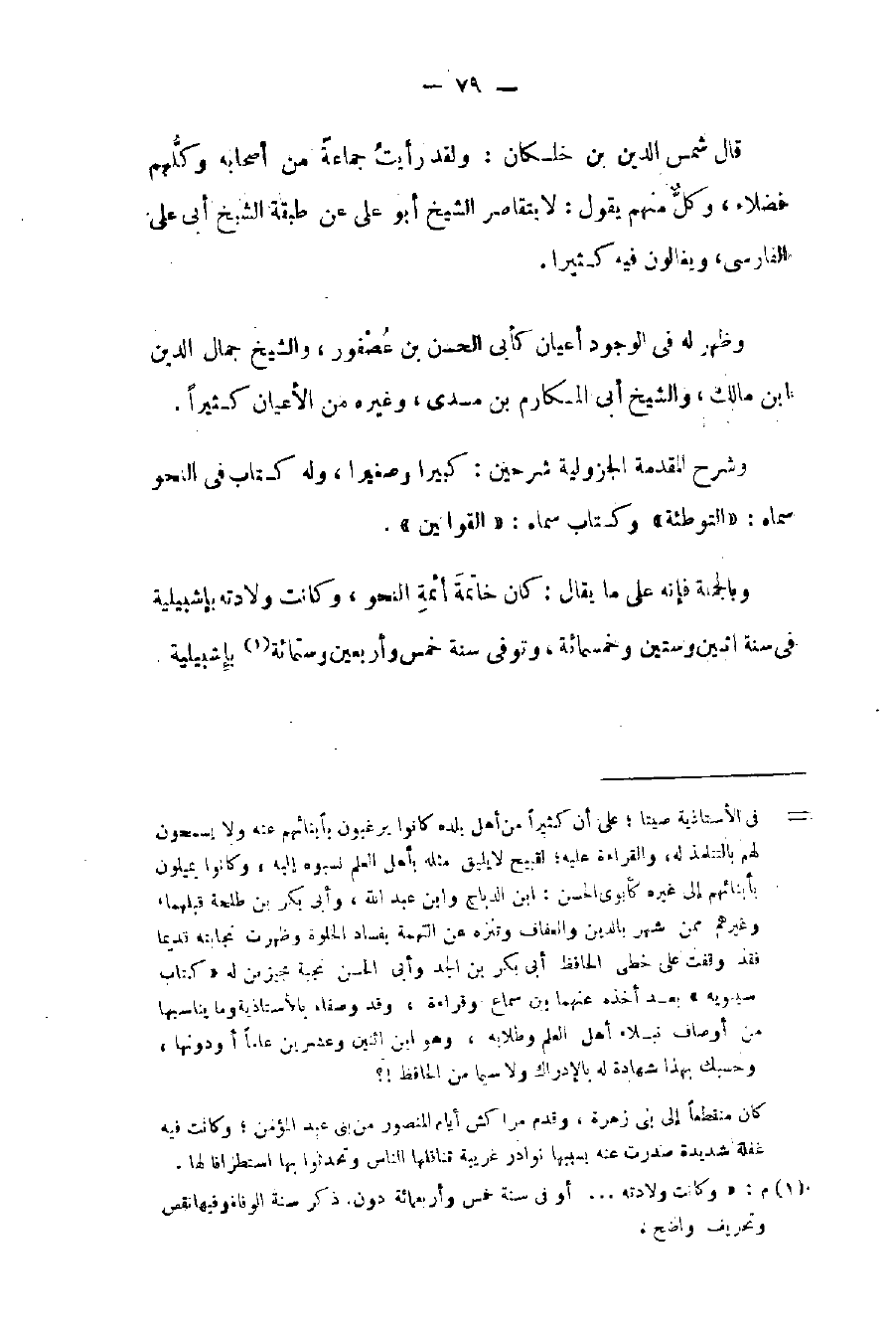 وشرح المقدمة الجزولية شرحين: كبيراً وصغيراً وله كتاب في النحو سماه: التوطئة وكتاب سماه: القوانين. وبالجملة فإنه على ما يقال: كان خاتمة أئمة النحو وكانت ولادته بإشبيلية في سنة اثنين وستين وخمسمائة وتوفي سنة خمس وأربعين وستمائة بإشبيلية.