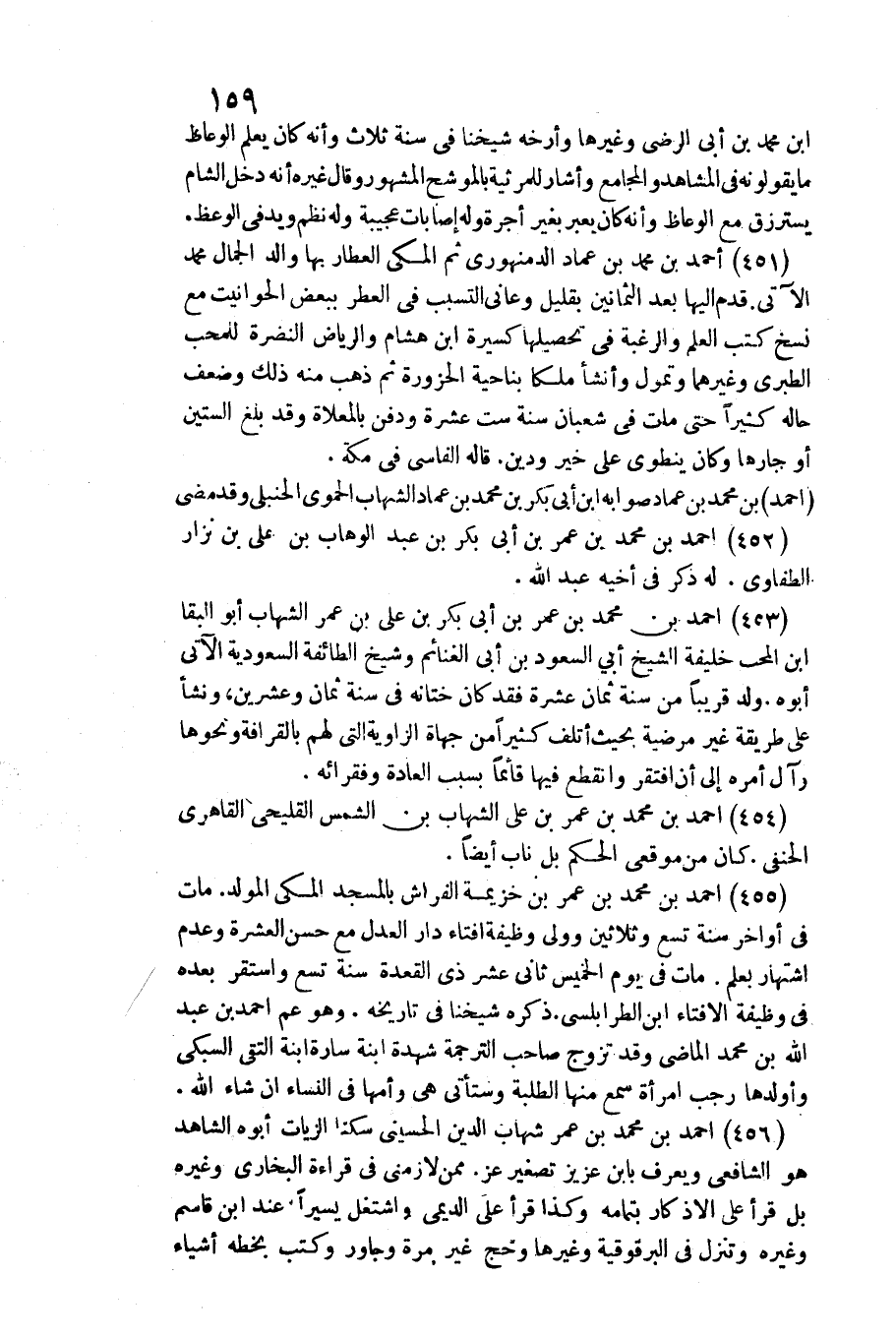 451 - أَحْمد بن مُحَمَّد بن عماد الدمنهوري ثمَّ الْمَكِّيّ الْعَطَّار بهَا وَالِد الْجمال مُحَمَّد الْآتِي. / قدم إِلَيْهَا بعد الثَّمَانِينَ بِقَلِيل وعانى التَّسَبُّب فِي الْعطر بِبَعْض الحوانيت مَعَ نسخ كتب الْعلم وَالرَّغْبَة فِي تَحْصِيلهَا كسيرة ابْن هِشَام والرياض النضرة للمحب الطَّبَرِيّ وَغَيرهمَا وتمول وَأَنْشَأَ ملكا بِنَاحِيَة الْحَزْوَرَة ثمَّ ذهب مِنْهُ ذَلِك وَضعف حَاله كثيرا حَتَّى مَاتَ فِي شعْبَان سنة سِتّ عشرَة وَدفن بالمعلاة وَقد بلغ السِّتين أَو جارها وَكَانَ ينطوي على خير وَدين. قَالَه الفاسي فِي مَكَّة.