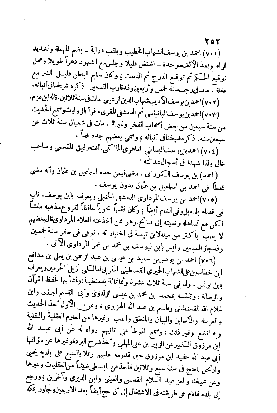 705 - أَحْمد بن يُوسُف المرداوي الدِّمَشْقِي الْحَنْبَلِيّ وَيعرف بِابْن يُوسُف. / نَاب فِي قَضَاء بَلَده بل وَفِي