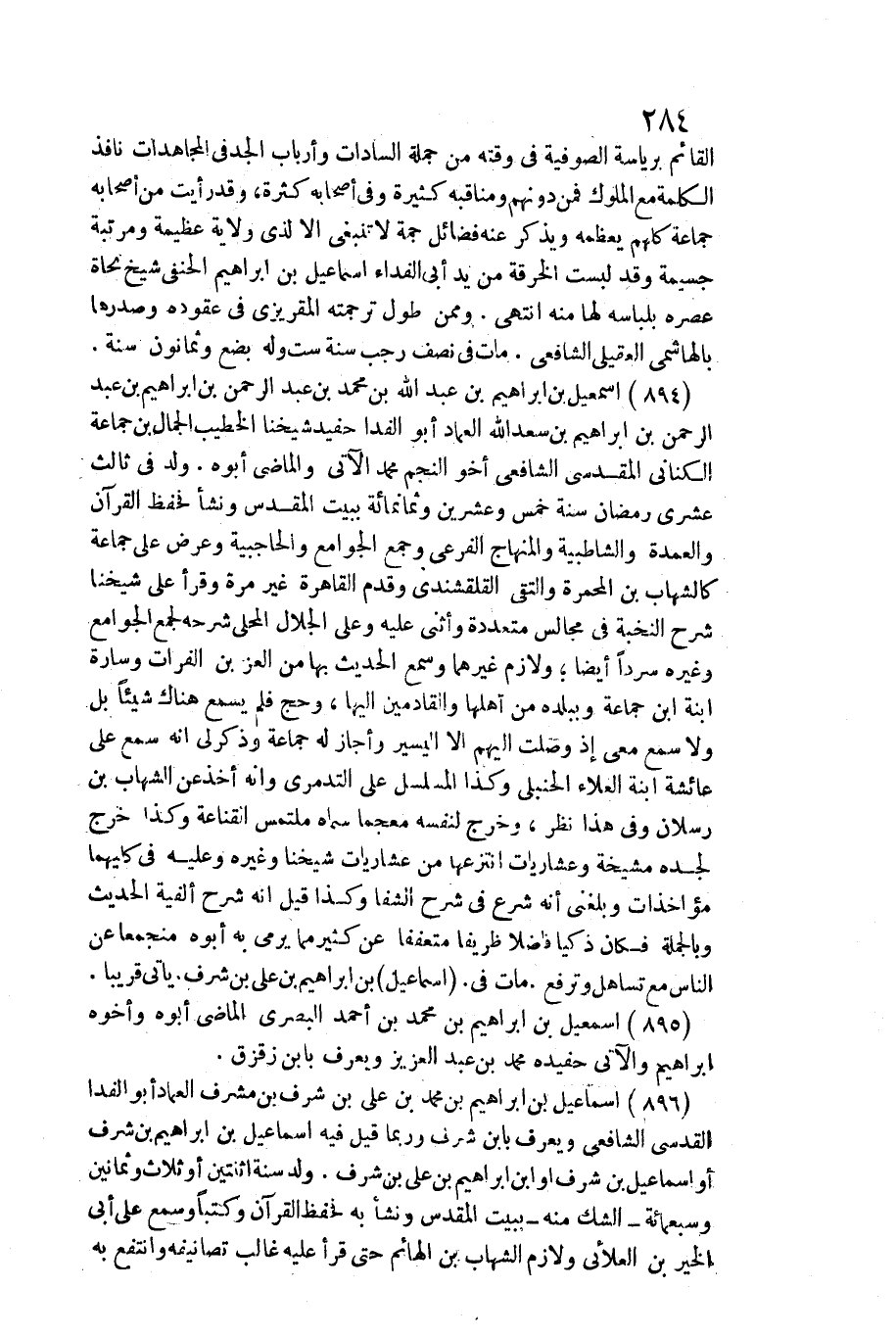 896 - إِسْمَاعِيل بن إِبْرَاهِيم بن مُحَمَّد بن عَليّ بن شرف بن مشرف الْعِمَاد أَبُو الفدا الْقُدسِي الشَّافِعِي وَيعرف بِابْن شرف / وَرُبمَا قيل فِيهِ إِسْمَاعِيل بن إِبْرَاهِيم بن شرف أَو إِسْمَاعِيل بن شرف أَو ابْن إِبْرَاهِيم بن عَليّ بن شرف. ولد سنة اثْنَتَيْنِ أَو ثَلَاث وَثَمَانِينَ وَسَبْعمائة الشَّك مِنْهُ بِبَيْت