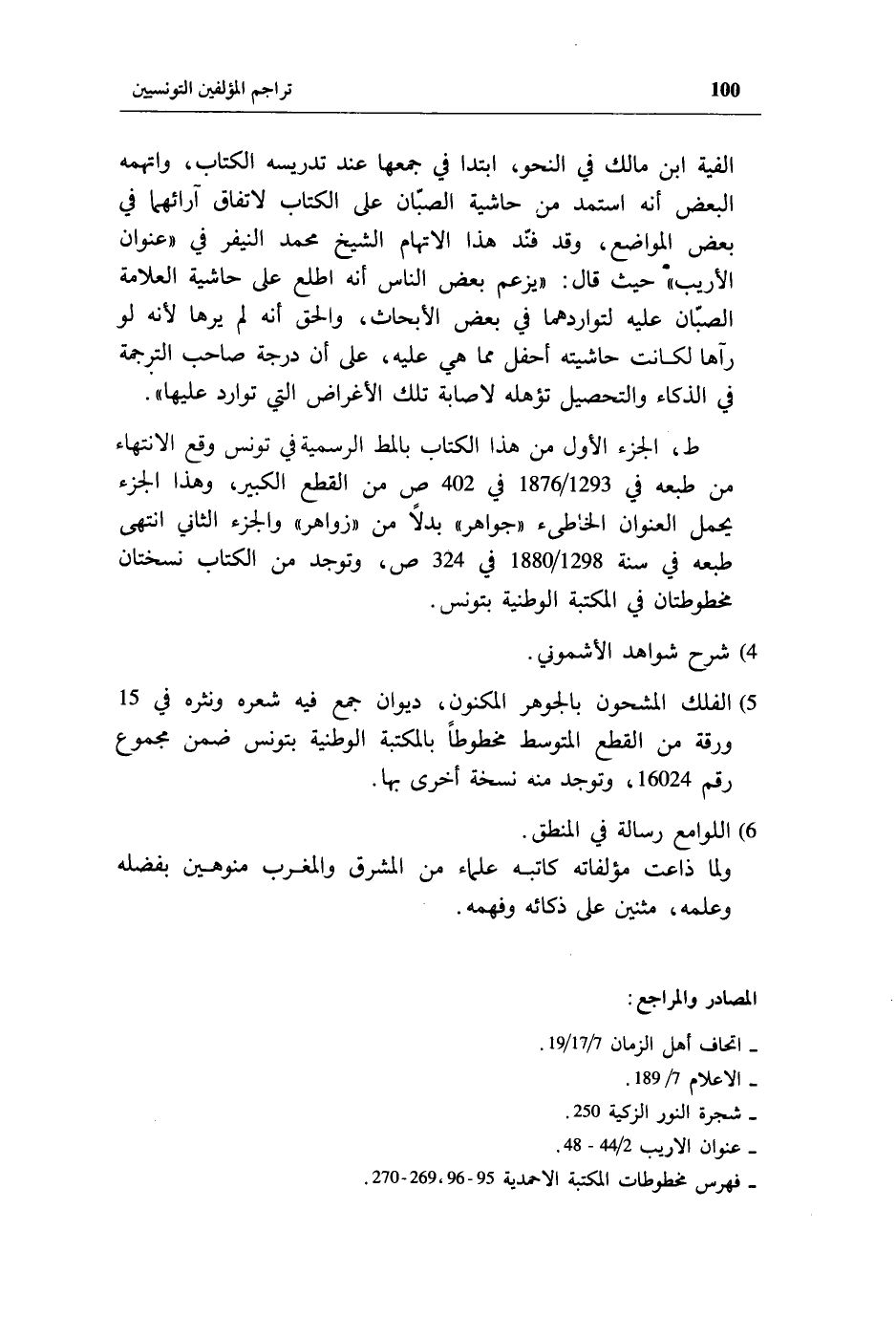 - فهرس مخطوطات المكتبة الاحمدية 95 - 96، 269 - 270.