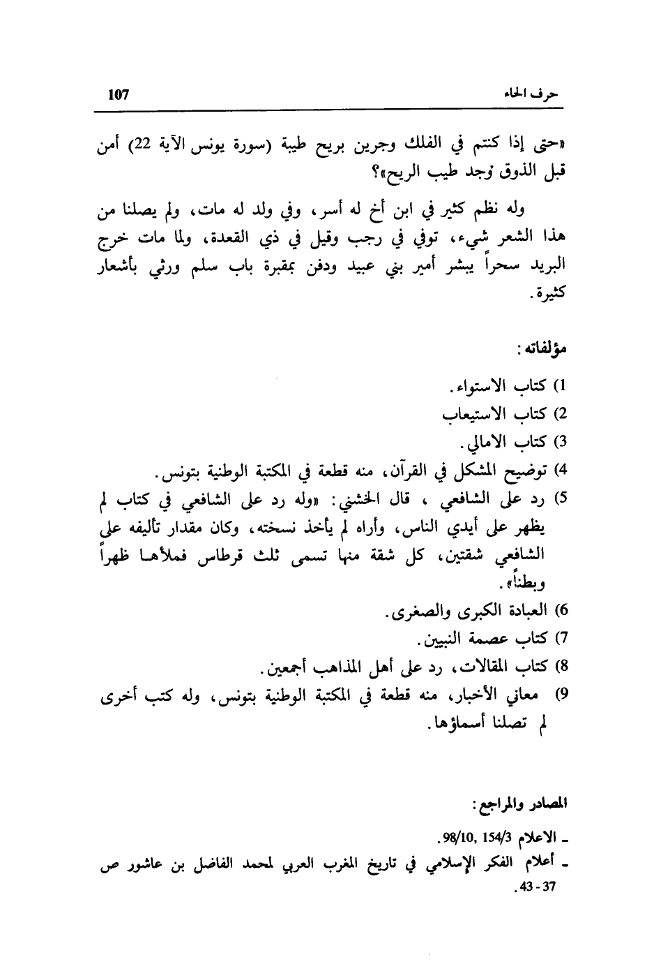 - أعلام الفكر الإسلامي في تاريخ المغرب العربي لمحمد الفاضل بن عاشور ص 37 - 43.