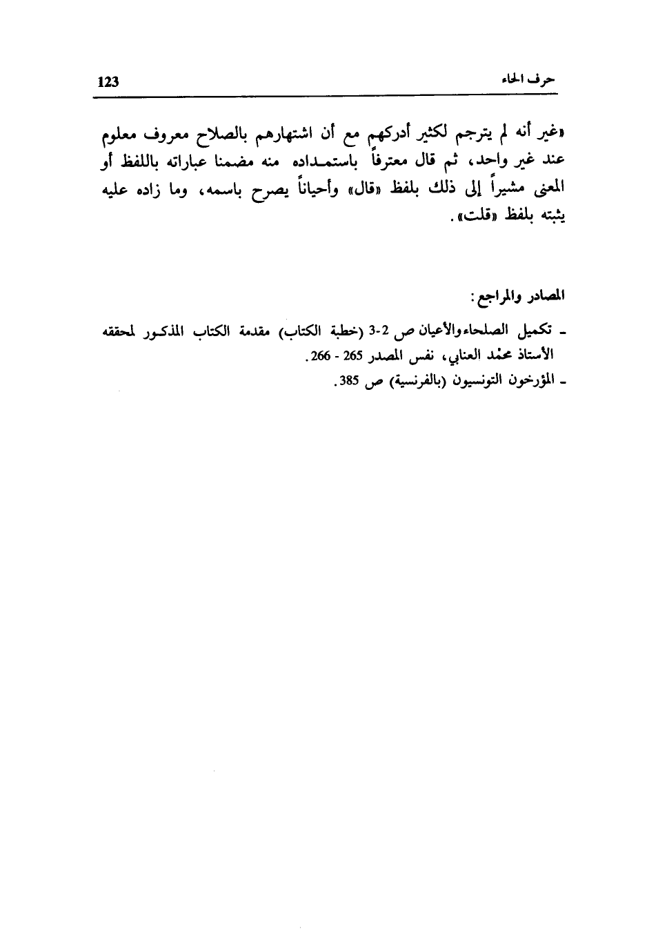 - تكميل الصلحاء والأعيان ص 2 - 3 (خطبة الكتاب) مقدمة الكتاب المذكور لمحققه الأستاذ محمد العنابي، نفس المصدر 265 - 266.