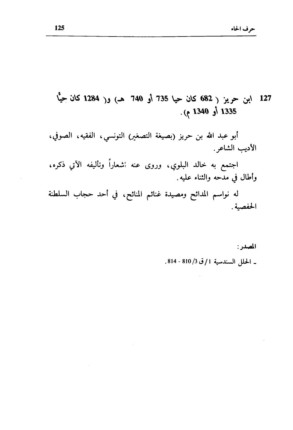 127 - ابن حريز (682 كان حيا 735 أو 740 هـ) و (1284 كان حيّا