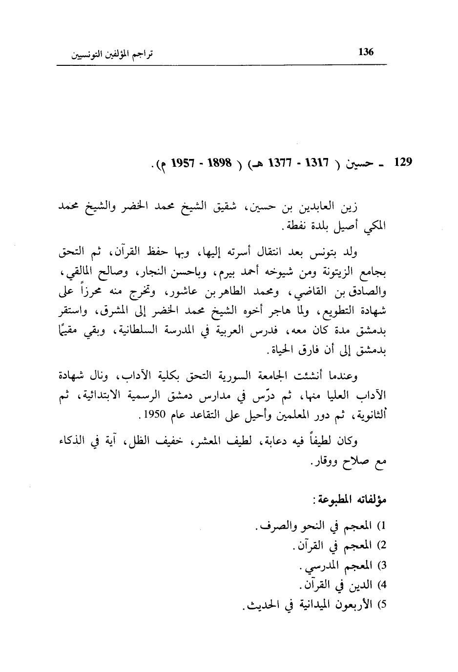 129 - حسين (1317 - 1377 هـ) (1898 - 1957 م)