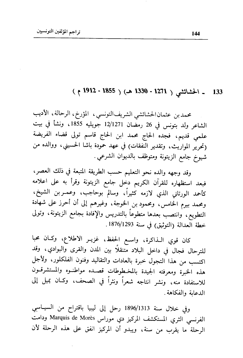 133 - الحشائشي (1271 - 1330 هـ) (1855 - 1912 م)