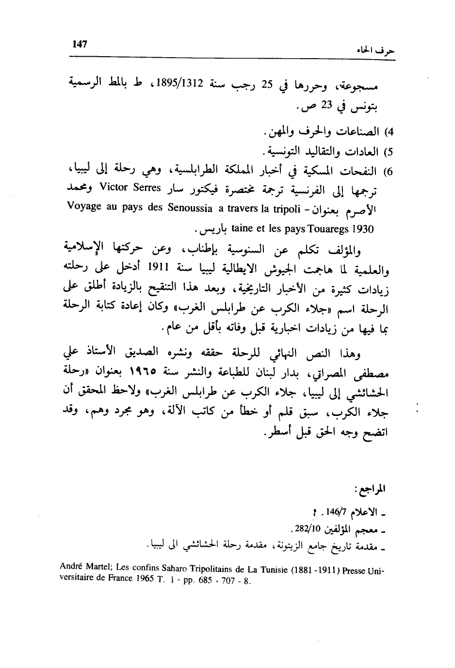 Andre Martel;Les confins Saharo Tripolitains de La Tunisie (1881 - 1911) Presse Uni versitaire de France 1965 T.l - pp.685، 707 - 8.