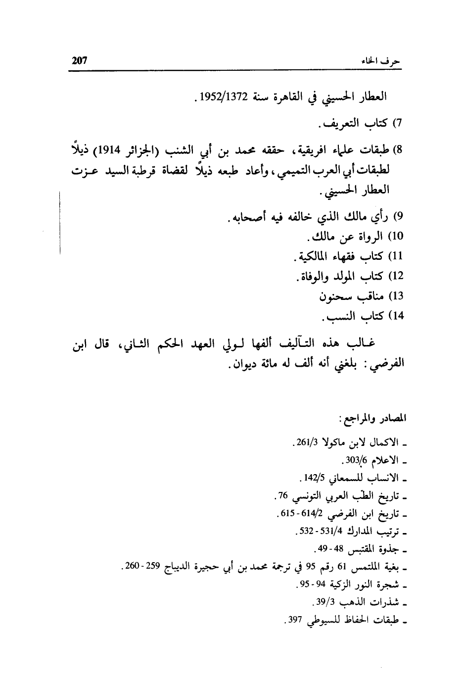8) طبقات علماء افريقية، حققه محمد بن أبي الشنب (الجزائر 1914) ذيلا لطبقات أبي العرب التميمي، وأعاد طبعه ذيلا لقضاة قرطبة السيد عزت العطار الحسيني.
