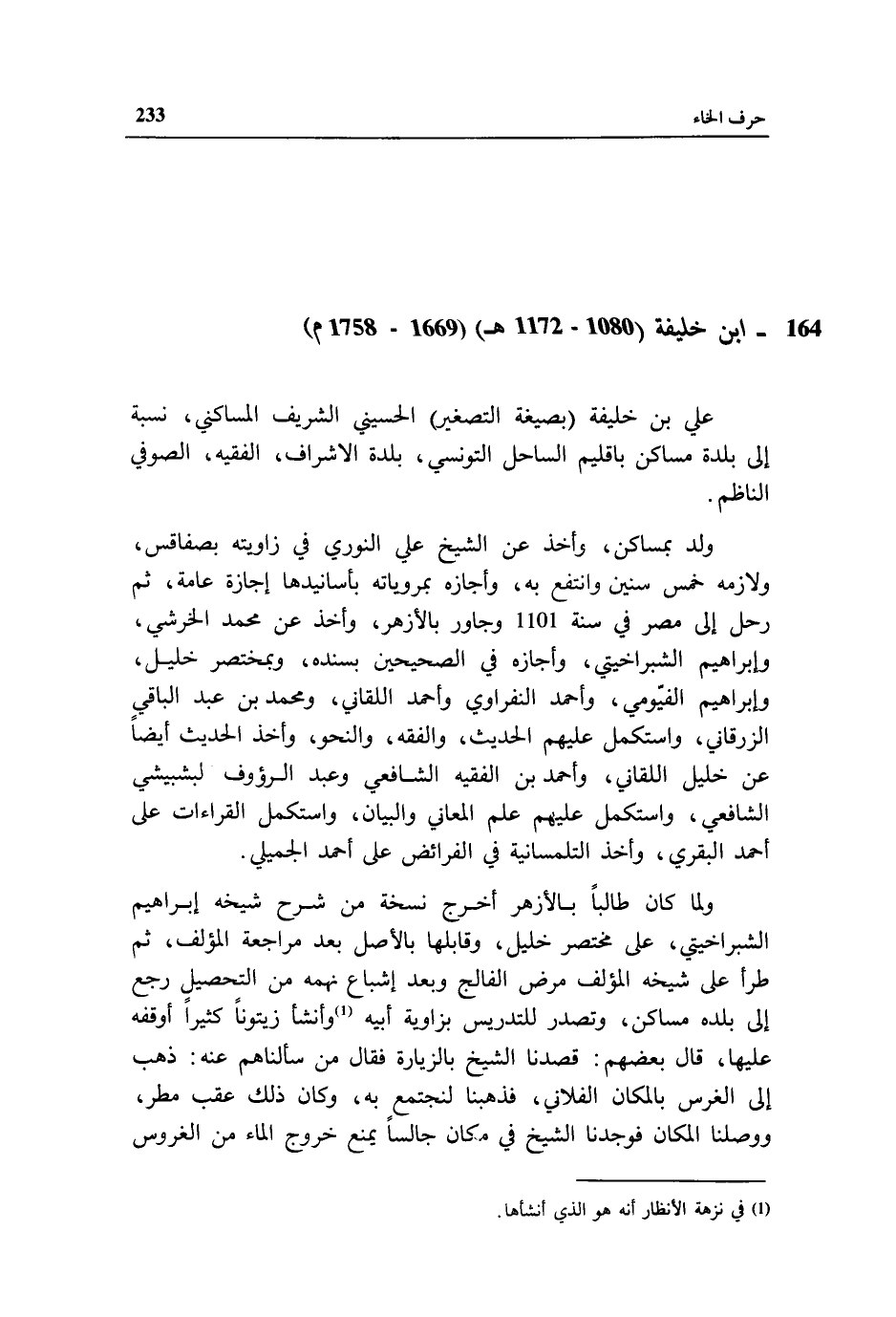164 - ابن خليفة (1080 - 1172 هـ) (1669 - 1758 م)