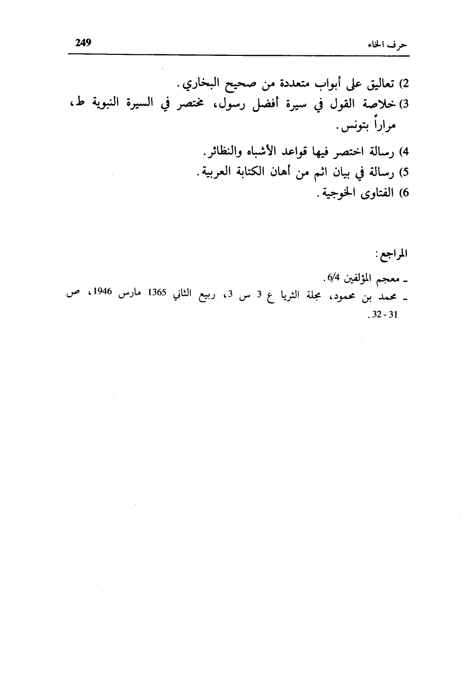 3) خلاصة القول في سيرة أفضل رسول، مختصر في السيرة النبوية ط، مرارا بتونس.