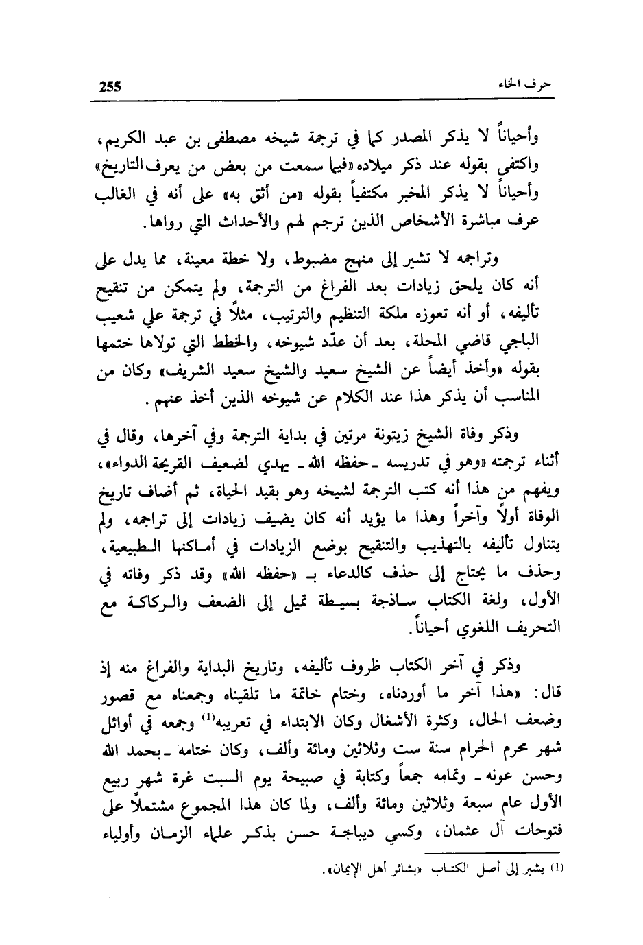 وذكر وفاة الشيخ زيتونة مرتين في بداية الترجمة وفي آخرها، وقال في أثناء ترجمته «وهو في تدريسه - حفظه الله - يهدي لضعيف القريحة الدواء»، ويفهم من هذا أنه كتب الترجمة لشيخه وهو بقيد الحياة، ثم أضاف تاريخ الوفاة أولا وآخرا وهذا ما يؤيد أنه كان يضيف زيادات إلى تراجمه، ولم يتناول تأليفه بالتهذيب والتنقيح بوضع الزيادات في أماكنها الطبيعية، وحذف ما يحتاج إلى حذف كالدعاء ب «حفظه الله» وقد ذكر وفاته في الأول، ولغة الكتاب ساذجة بسيطة تميل إلى الضعف والركاكة مع التحريف اللغوي أحيانا.