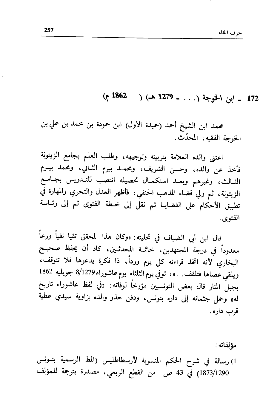 172 - ابن الخوجة ( ... - 1279 هـ) (1862 م)