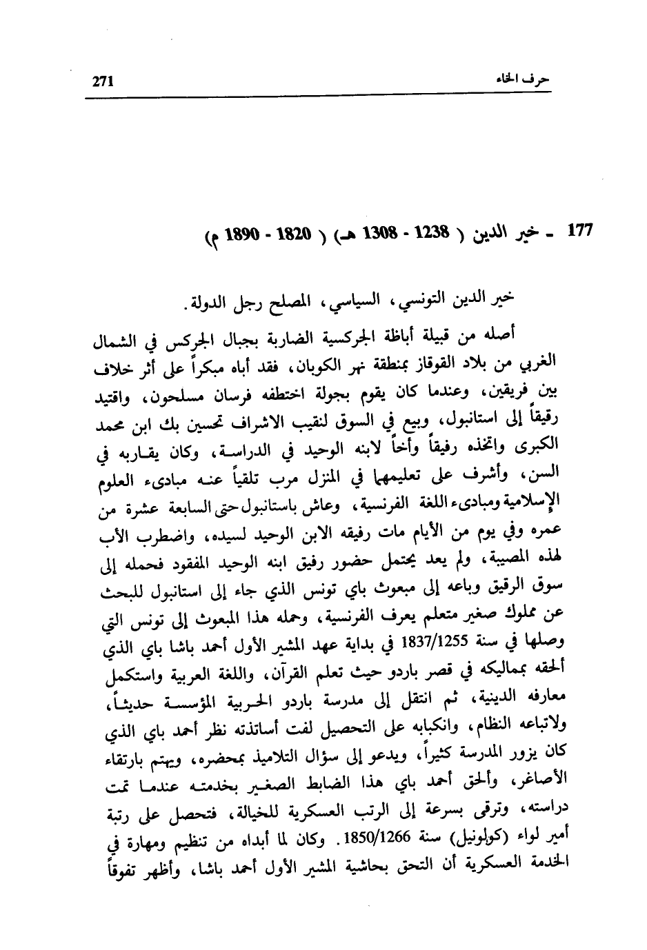 177 - خير الدين (1238 - 1308 هـ) (1820 - 1890 م)