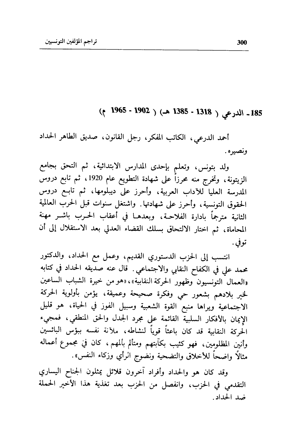 أحمد الدرعي، الكاتب المفكر، رجل القانون، صديق الطاهر الحداد ونصيره.