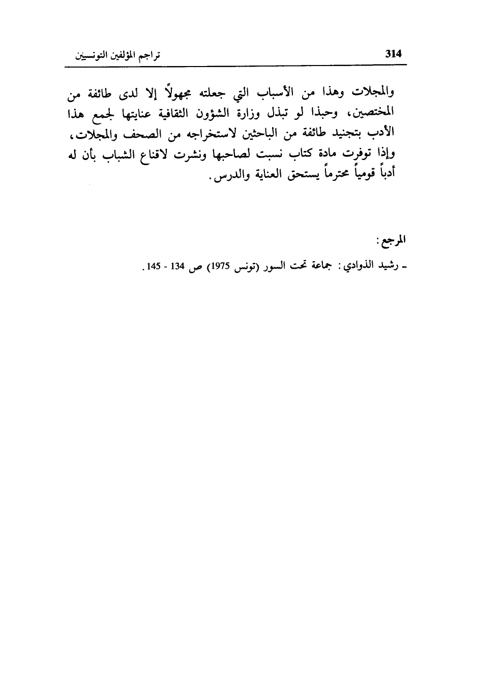 - رشيد الذوادي: جماعة تحت السور (تونس 1975) ص 134 - 145.