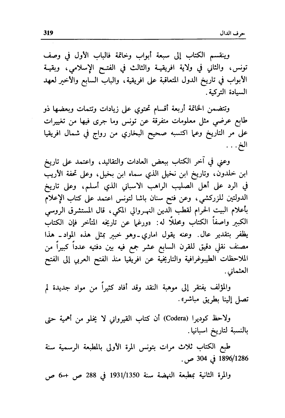 ولاحظ كوديرا (Codera) أن كتاب القيرواني لا يخلو من أهمية حتى بالنسبة لتاريخ اسبانيا.
