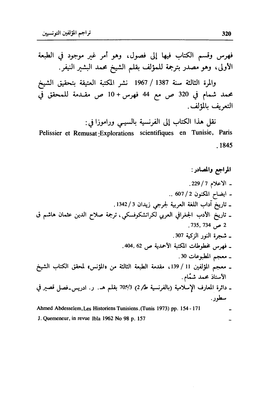 Ahmed Abdesselem، Les Historiens Tunisiens. (Tunis 1973) pp .154 - 171.