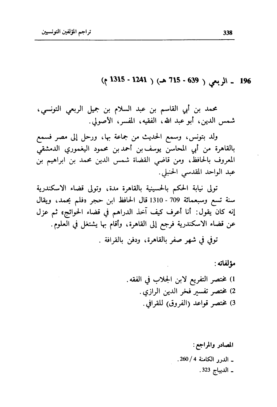 196 - الربعي (639 - 715 هـ) (1241 - 1315 م)