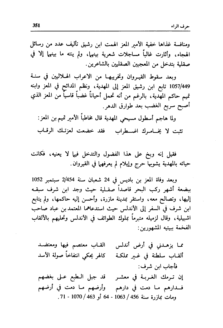 ومات بمازرة سنة 456/ 1063 - 64 أو 463/ 1070 - 71.