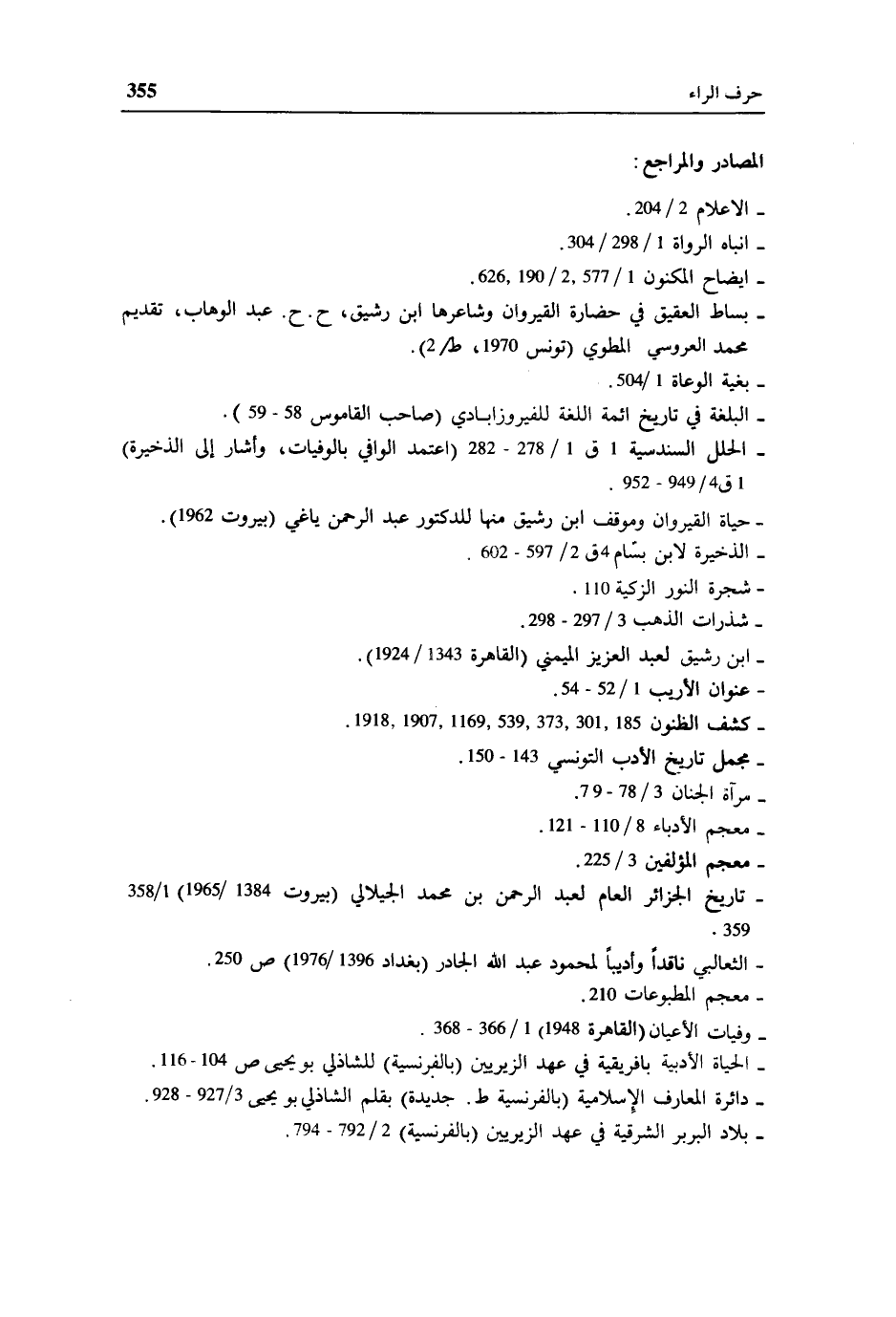 - بلاد البربر الشرقية في عهد الزيريين (بالفرنسية) 2/ 792 - 794.