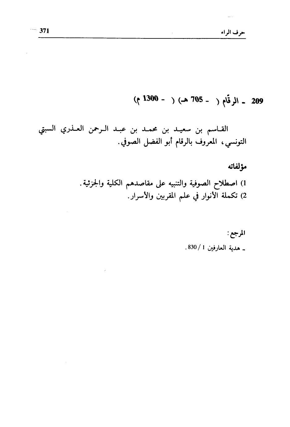 209 - الرقّام (- 705 هـ) (- 1300 م)