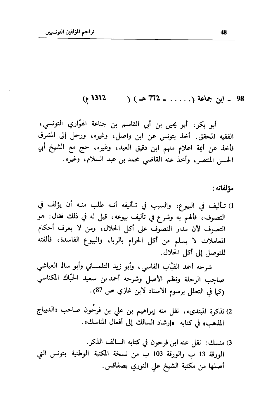 98 - ابن جماعة ( ..... - 772 هـ) (1312 م)