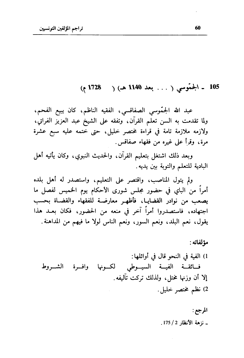 105 - الجمّوسي ( ... بعد 1140 هـ) (1728 م)