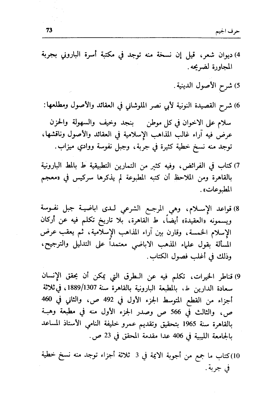 10) كتاب ما جمع من أجوبة الايمة في 3 ثلاثة أجزاء توجد منه نسخ خطية في جربة.