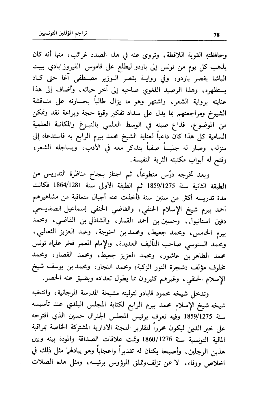 وتدخل شيخه محمود قابادو لتوليته مشيخة المدرسة المرجانية، وانتخبه شيخه شيخ الإسلام محمد بيرم الرابع لكتابة المجلس البلدي عند تأسيسه سنة 1275/ 1859 وفيه تعرف برئيس المجلس الجنرال حسين الذي اقترحه على خير الدين ليكون محررا لتقارير اللجنة الادارية المشتركة الخاصة بمراقبة المالية التونسية سنة 1276/ 1860 وتمت علاقات الصداقة والمودة بينه وبين هذين الرجلين، وأصبحا يكنان له تقديرا واعجابا وهو يبادلهما مثل ذلك في اخلاص ووفاء، لا عن تزلف وتملق المرءوس برئيسه، ومثل هذه الصلات