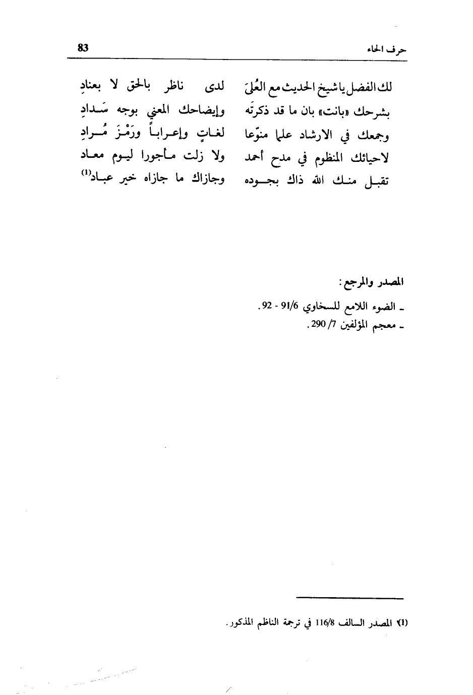 لك الفضل يا شيخ الحديث مع العلى … لدى ناظر بالحق لا بعناد