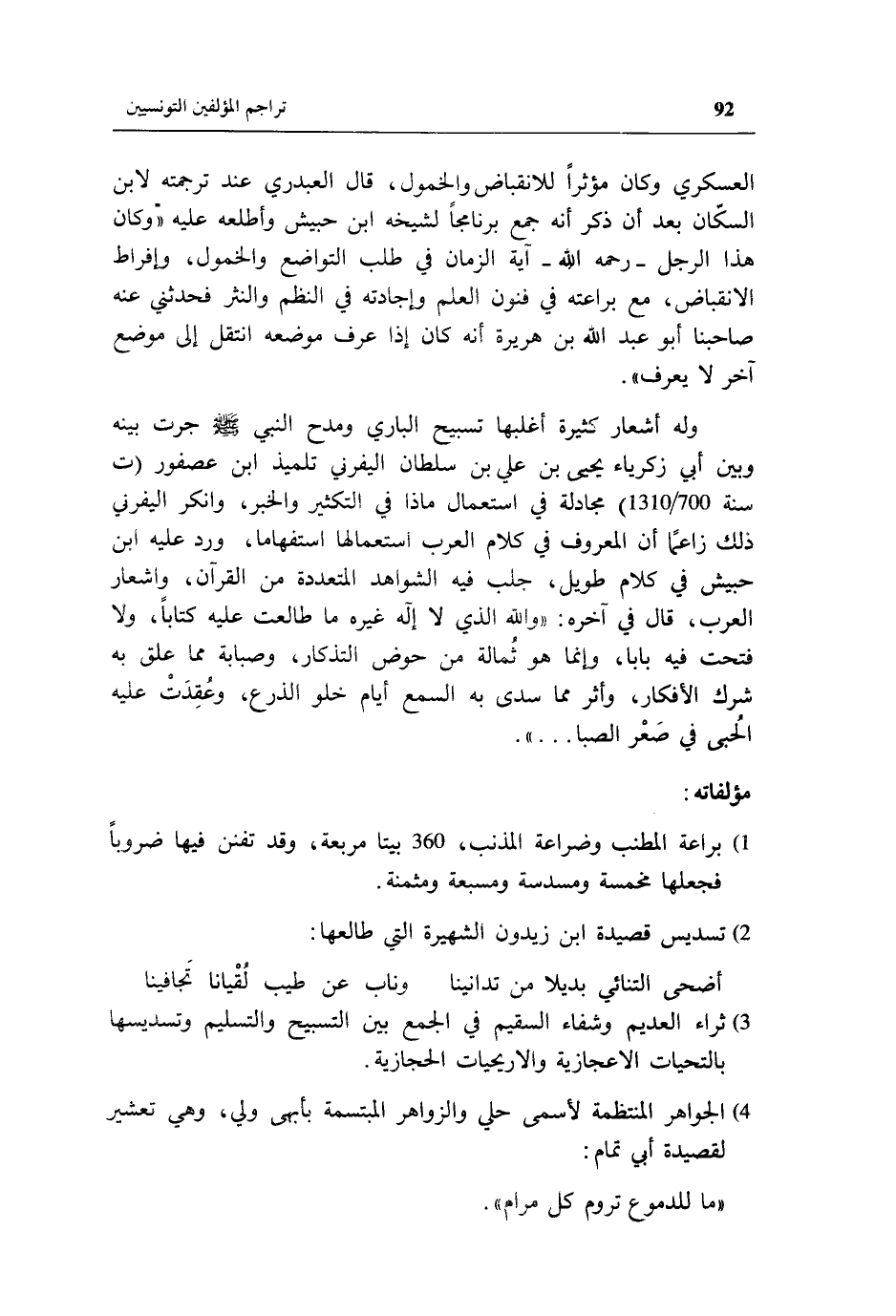 4) الجواهر المنتظمة لأسمى حلي والزواهر المبتسمة بأبهى ولي، وهي تعشير لقصيدة أبي تمام: