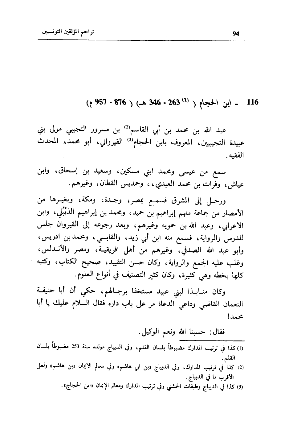 116 - ابن الحجام ((¬1) 263 - 346 هـ) (876 - 957 م)