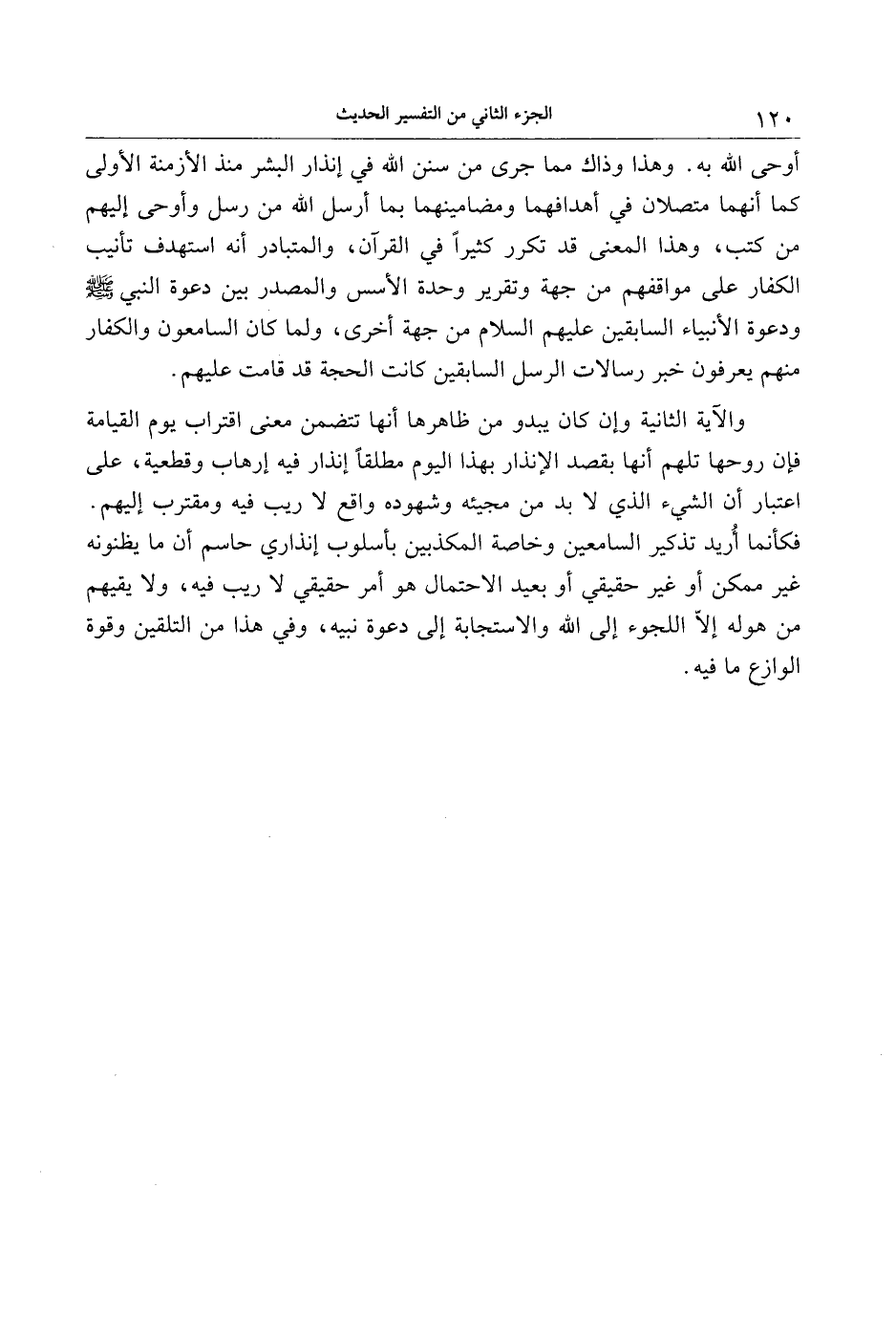 والآية الثانية وإن كان يبدو من ظاهرها أنها تتضمن معنى اقتراب يوم القيامة فإن روحها تلهم أنها بقصد الإنذار بهذا اليوم مطلقا إنذار فيه إرهاب وقطعية، على اعتبار أن الشيء الذي لا بد من مجيئه وشهوده واقع لا ريب فيه ومقترب إليهم.