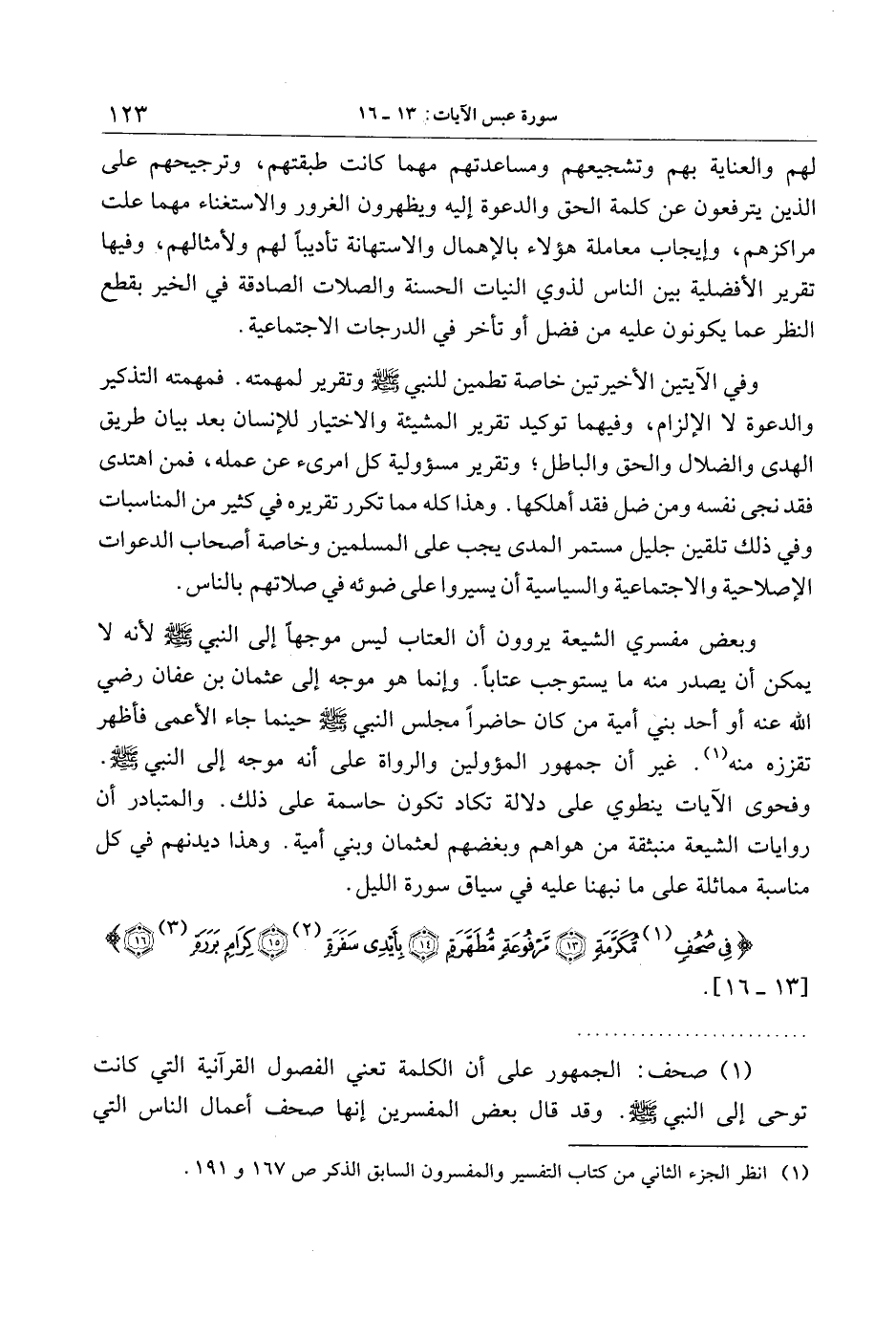 فِي صُحُفٍ مُكَرَّمَةٍ (13) مَرْفُوعَةٍ مُطَهَّرَةٍ (14) بِأَيْدِي سَفَرَةٍ (15) كِرامٍ بَرَرَةٍ (16)