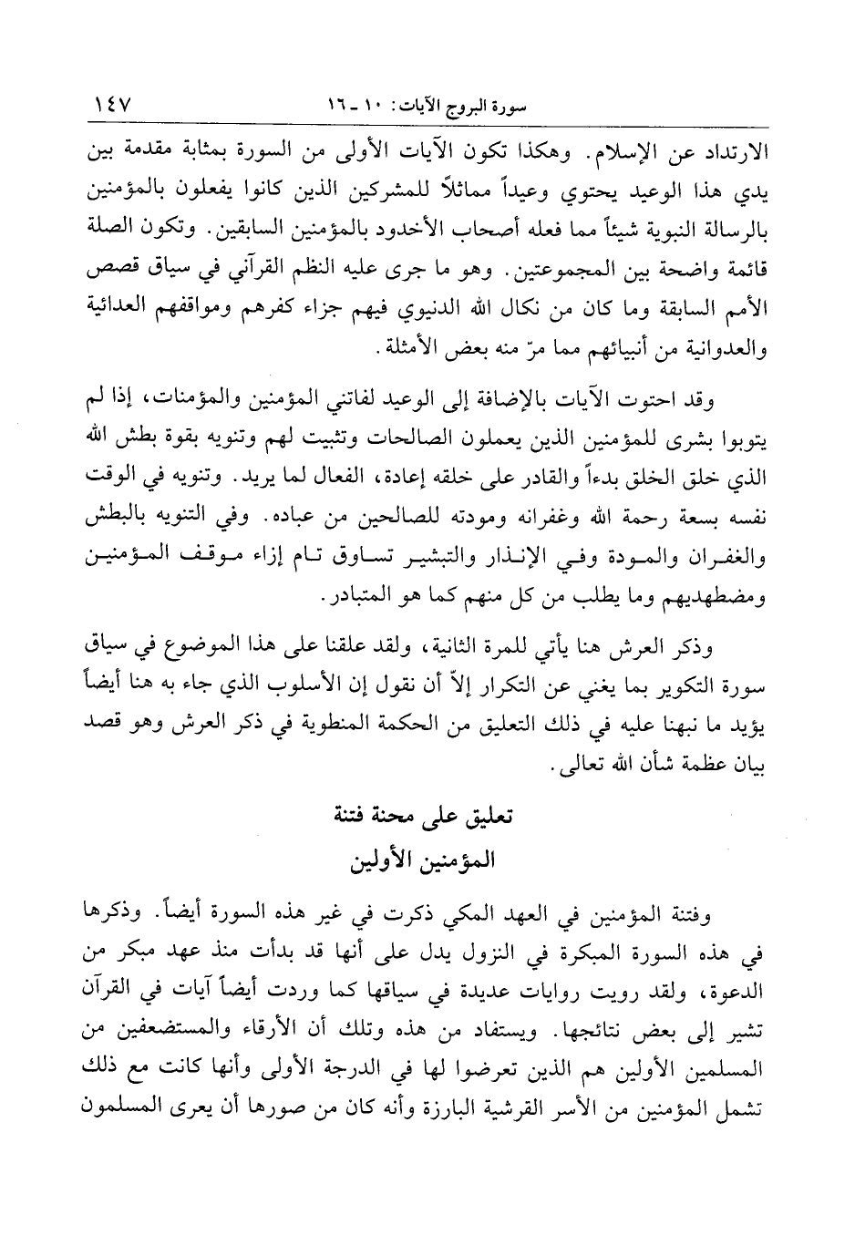 وقد احتوت الآيات بالإضافة إلى الوعيد لفاتني المؤمنين والمؤمنات، إذا لم يتوبوا بشرى للمؤمنين الذين يعملون الصالحات وتثبيت لهم وتنويه بقوة بطش الله الذي خلق الخلق بدءا والقادر على خلقه إعادة، الفعال لما يريد. وتنويه في الوقت نفسه بسعة رحمة الله وغفرانه ومودته للصالحين من عباده. وفي التنويه بالبطش والغفران والمودة وفي الإنذار والتبشير تساوق تام إزاء موقف المؤمنين ومضطهديهم وما يطلب من كل منهم كما هو المتبادر.