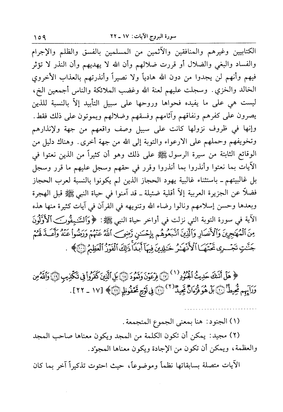 هَلْ أَتاكَ حَدِيثُ الْجُنُودِ (17) فِرْعَوْنَ وَثَمُودَ (18) بَلِ الَّذِينَ كَفَرُوا فِي تَكْذِيبٍ (19) وَاللَّهُ مِنْ وَرائِهِمْ مُحِيطٌ (20) بَلْ هُوَ قُرْآنٌ مَجِيدٌ (21)