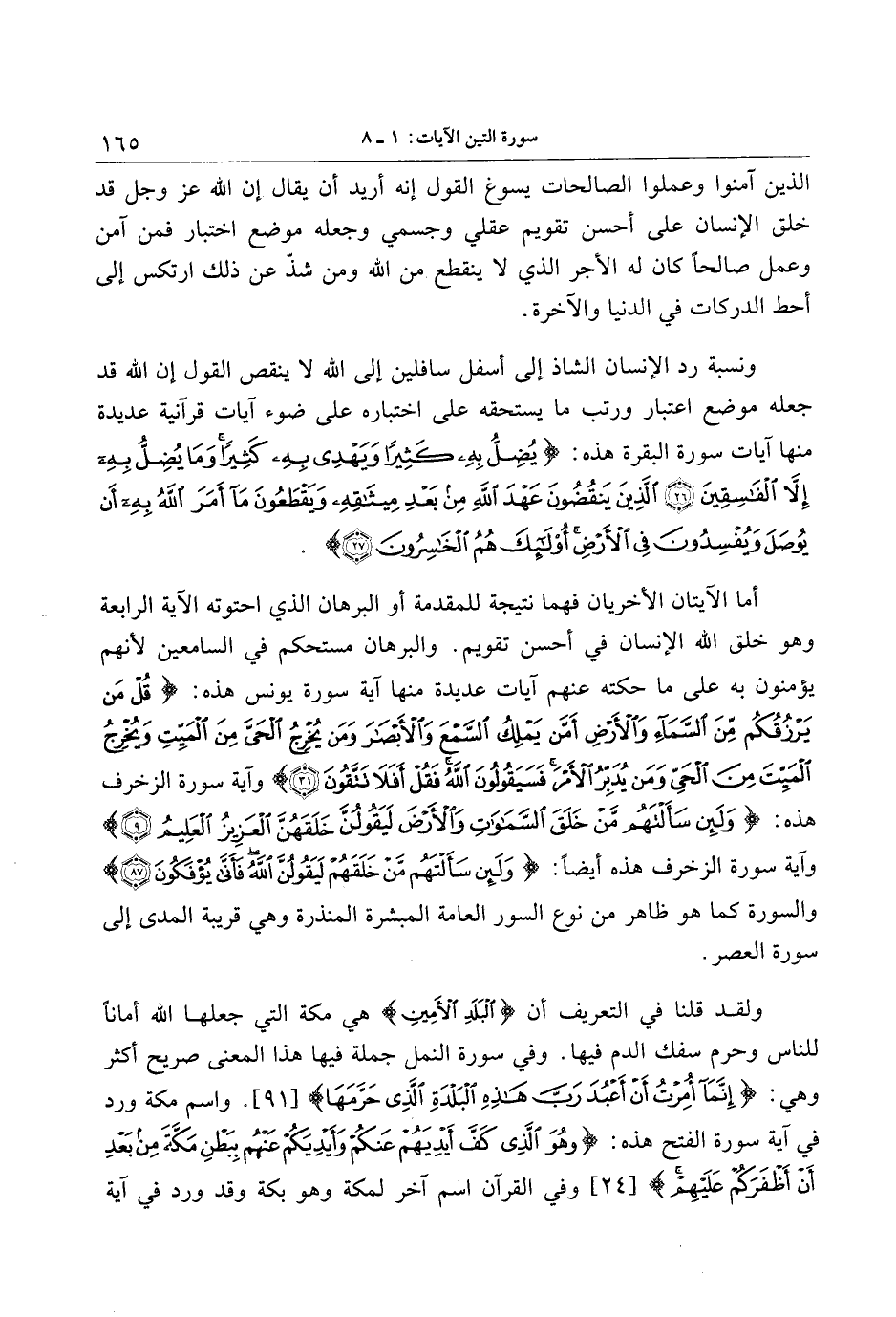 ولقد قلنا في التعريف أن الْبَلَدِ الْأَمِينِ هي مكة التي جعلها الله أمانا للناس وحرم سفك الدم فيها. وفي سورة النمل جملة فيها هذا المعنى صريح أكثر وهي: إِنَّما أُمِرْتُ أَنْ أَعْبُدَ رَبَّ هذِهِ الْبَلْدَةِ الَّذِي حَرَّمَها [91] . واسم مكة ورد في آية سورة الفتح هذه: وَهُوَ الَّذِي كَفَّ أَيْدِيَهُمْ عَنْكُمْ وَأَيْدِيَكُمْ عَنْهُمْ بِبَطْنِ مَكَّةَ مِنْ بَعْدِ أَنْ أَظْفَرَكُمْ عَلَيْهِمْ [24] وفي القرآن اسم آخر لمكة وهو بكة وقد ورد في آية