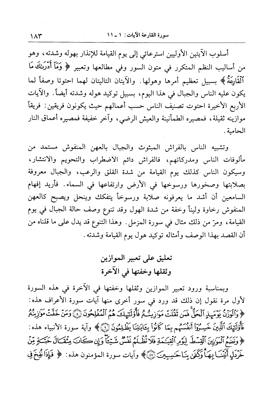 وبمناسبة ورود تعبير الموازين وثقلها وخفتها في الآخرة في هذه السورة لأول مرة نقول إن ذلك قد ورد في سور أخرى منها آيات سورة الأعراف هذه: