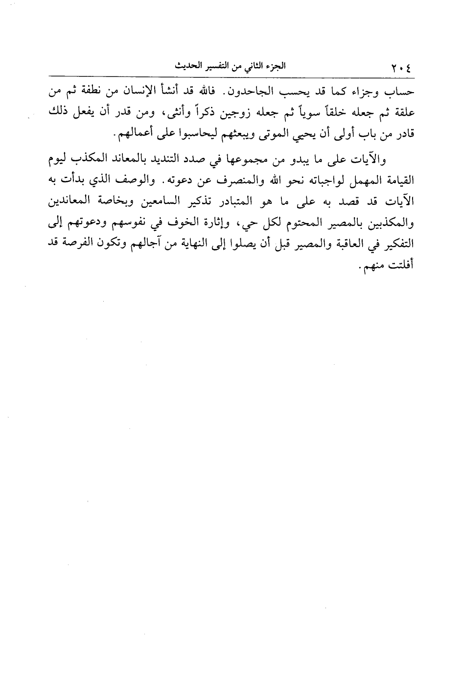 حساب وجزاء كما قد يحسب الجاحدون. فالله قد أنشأ الإنسان من نطفة ثم من علقة ثم جعله خلقا سويا ثم جعله زوجين ذكرا وأنثى، ومن قدر أن يفعل ذلك قادر من باب أولى أن يحيي الموتى ويبعثهم ليحاسبوا على أعمالهم.