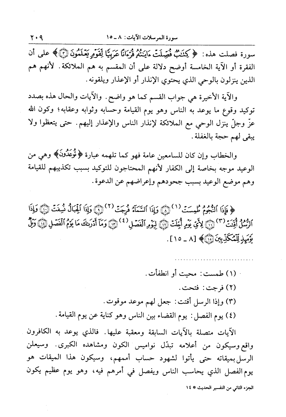 (4) يوم الفصل: يوم القضاء بين الناس وهو كناية عن يوم القيامة.