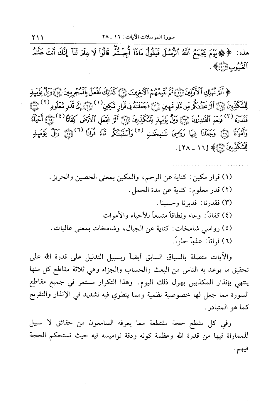 فَجَعَلْناهُ فِي قَرارٍ مَكِينٍ (21) إِلى قَدَرٍ مَعْلُومٍ (22) فَقَدَرْنا فَنِعْمَ الْقادِرُونَ (23) وَيْلٌ يَوْمَئِذٍ لِلْمُكَذِّبِينَ (24) أَلَمْ نَجْعَلِ الْأَرْضَ كِفاتاً (25)