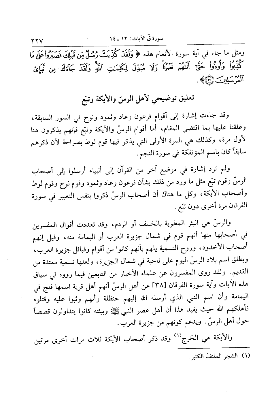 تعليق توضيحي لأهل الرسّ والأيكة وتبّع
