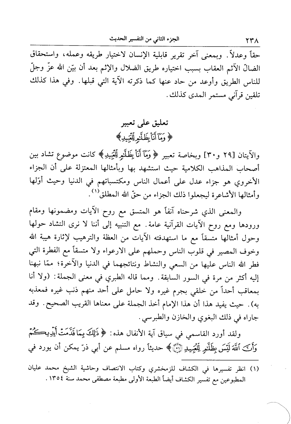 (1) انظر تفسيرها في الكشاف للزمخشري وكتاب الانتصاف وحاشية الشيخ محمد عليان المطبوعين مع تفسير الكشاف أيضا الطبعة الأولى مطبعة مصطفى محمد سنة 1354.