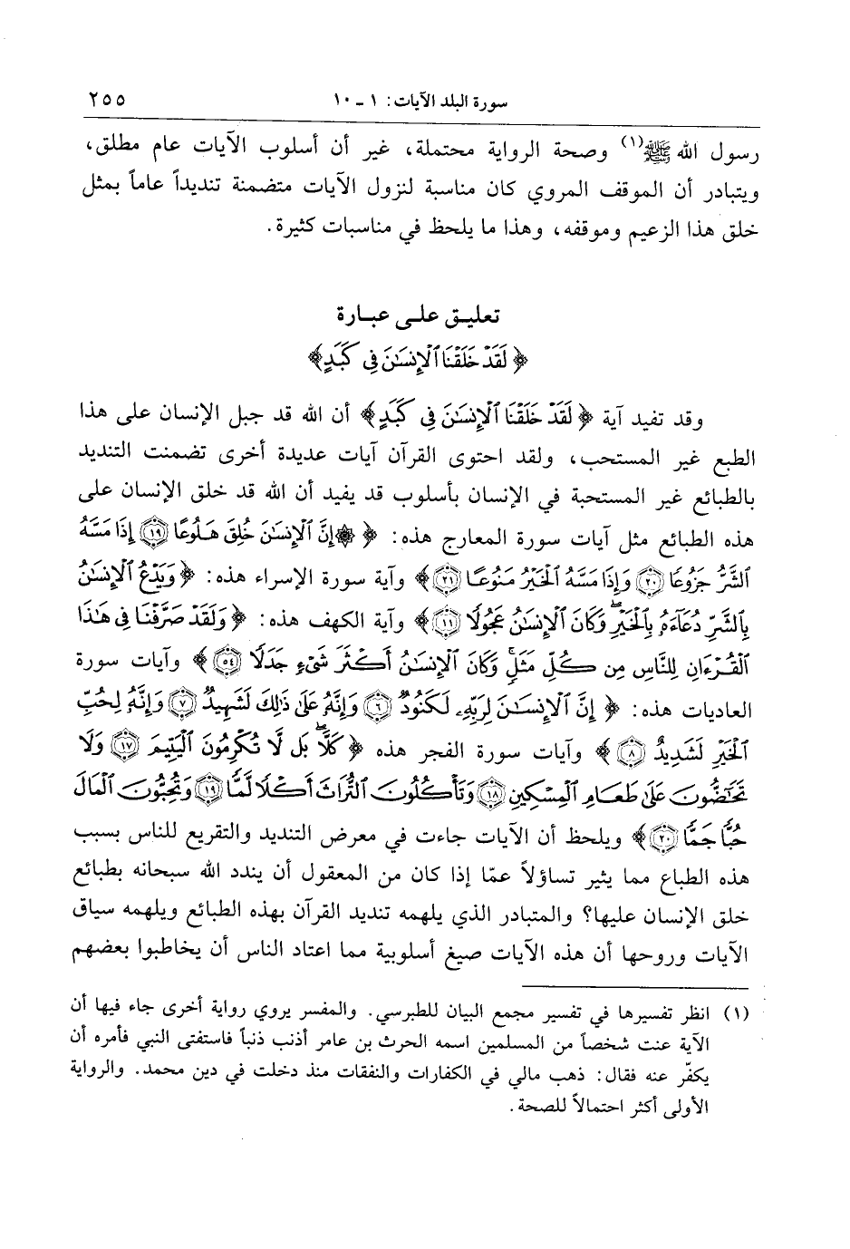تعليق على عبارة لَقَدْ خَلَقْنَا الْإِنْسانَ فِي كَبَدٍ