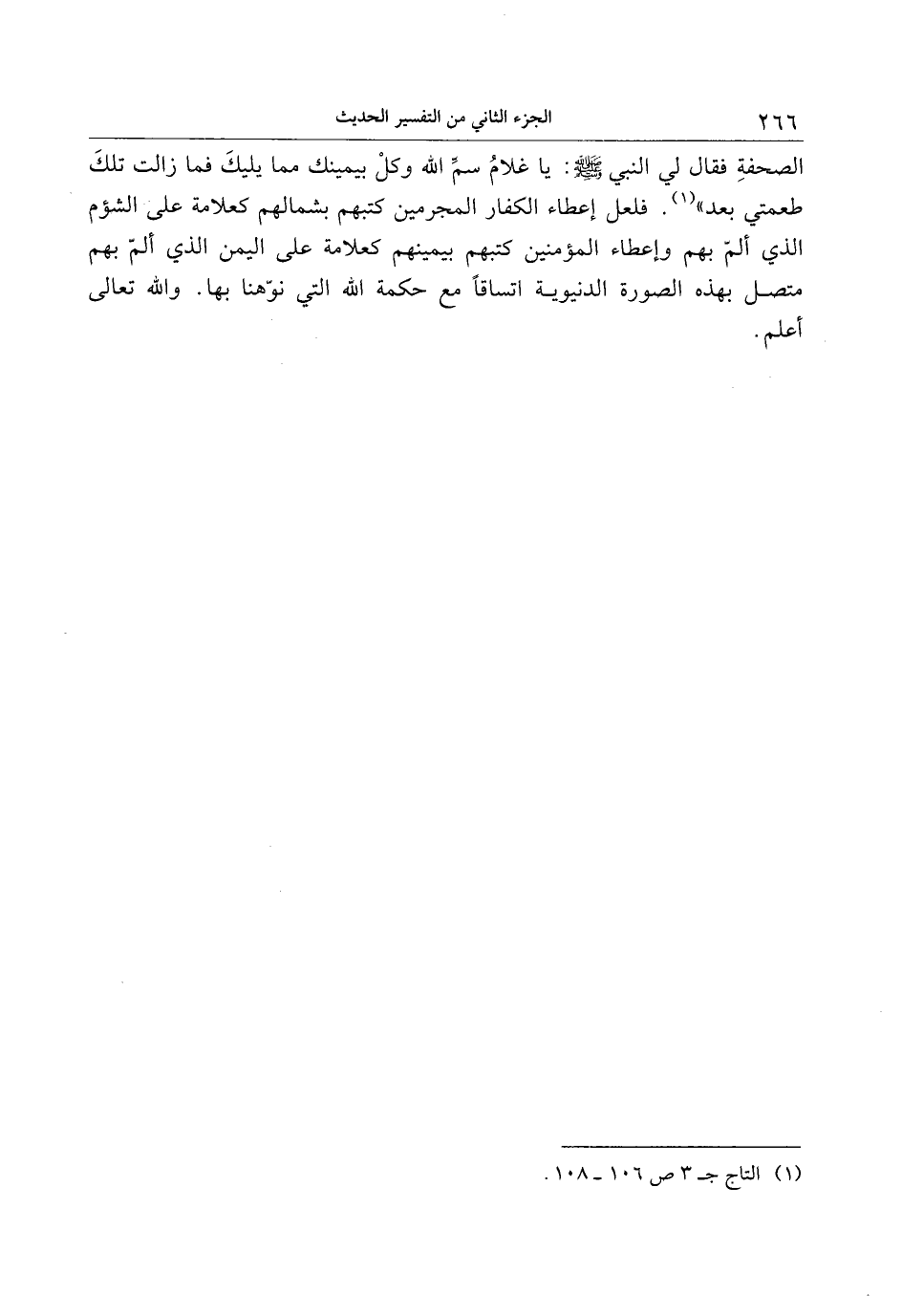 الصحفة فقال لي النبي صلّى الله عليه وسلّم: يا غلام سمّ الله وكل بيمينك مما يليك فما زالت تلك طعمتي بعد» «1» . فلعل إعطاء الكفار المجرمين كتبهم بشمالهم كعلامة على الشؤم الذي ألمّ بهم وإعطاء المؤمنين كتبهم بيمينهم كعلامة على اليمن الذي ألمّ بهم متصل بهذه الصورة الدنيوية اتساقا مع حكمة الله التي نوّهنا بها. والله تعالى أعلم.